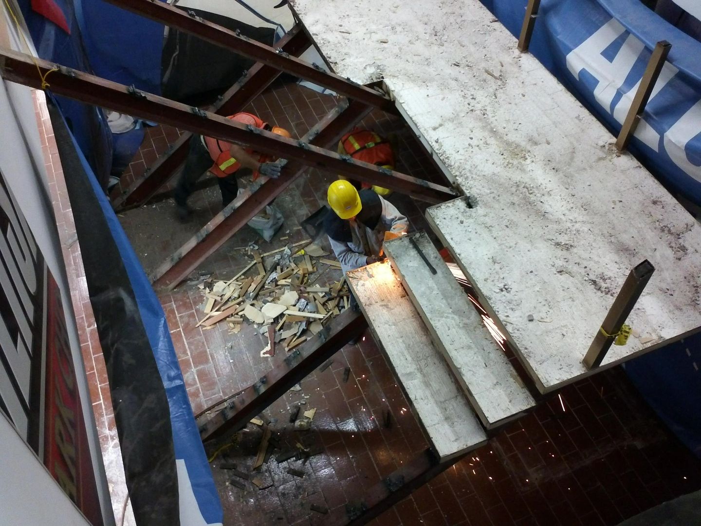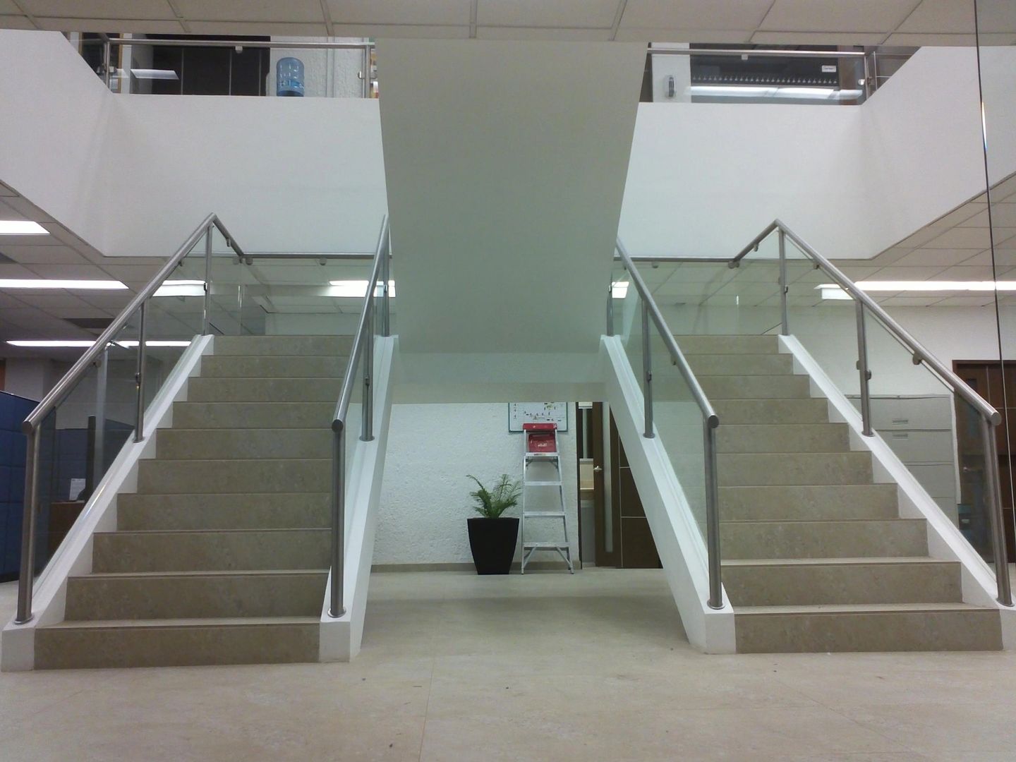 Remodelación de oficinas centrales, cambio de losas de piso, escalera, barandales y área de recepción